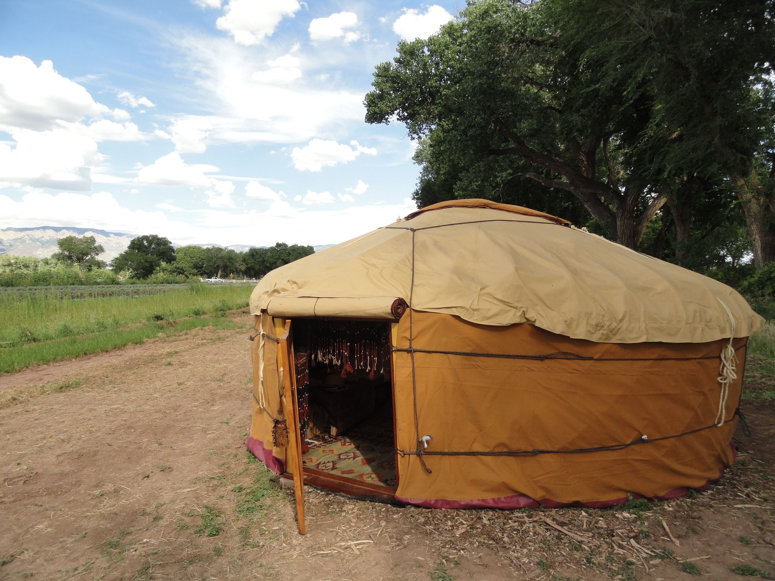 Foodshed Nomad is an ongoing project of Bruce T. Milne of the University of New Mexico where I am an ecologist and director of the Sustainability Studies Program. I explore ways to construct a meaningful identity rooted in local food, traditional architecture, pastoral ways, culture, crafts, and community relationships. I visit sites in New Mexico where I live temporarily in a highly portable, homemade 14-foot yurt I built from scratch following excellent instructions in Paul King’s The Complete Yurt Handbook. Visitors experience low-impact living, learn about developments in New Mexico’s foodshed, and celebrate the art and ecology of life. The project prompts us to question assumptions about our needs, to evaluate more sustainable options we could adopt, and play with a quasi-rational approach to finding rewarding ways of providing greater well-being for all.